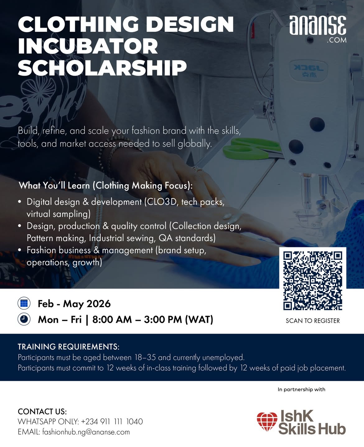 The Ananse Fashion Incubator Scholarship, sponsored by ISHK Tolaram Foundation, is equipping young creatives with the business and technical skills to grow sustainable fashion brands from idea to market.