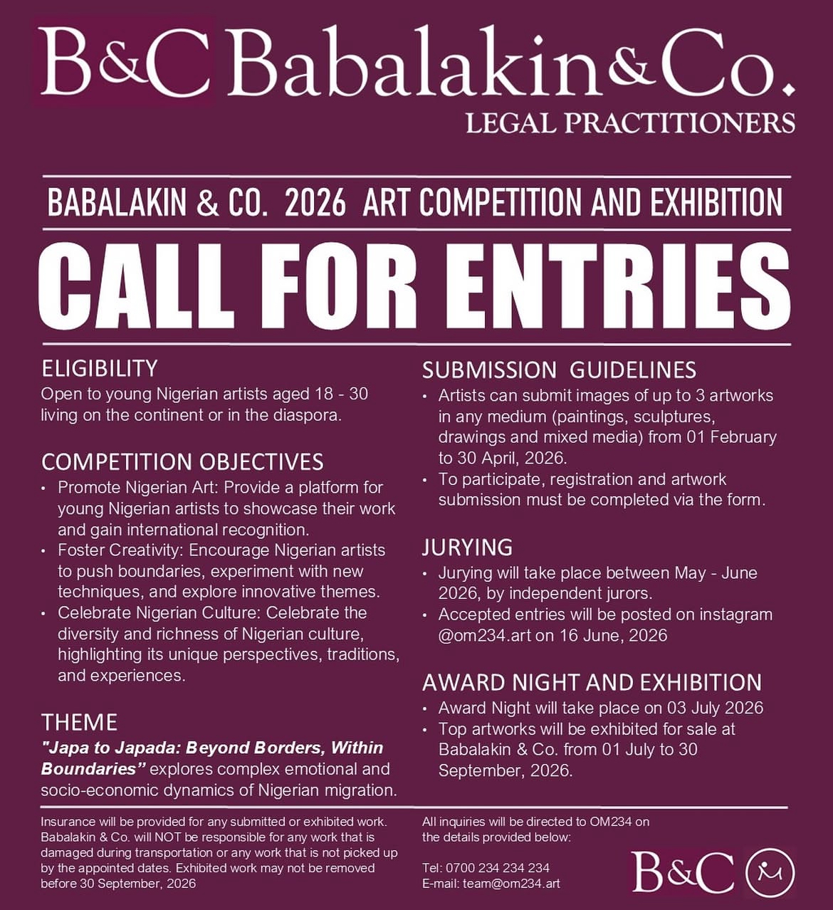 CALL FOR ENTRIES: Babalakin & Co. 2026 Art Competition
