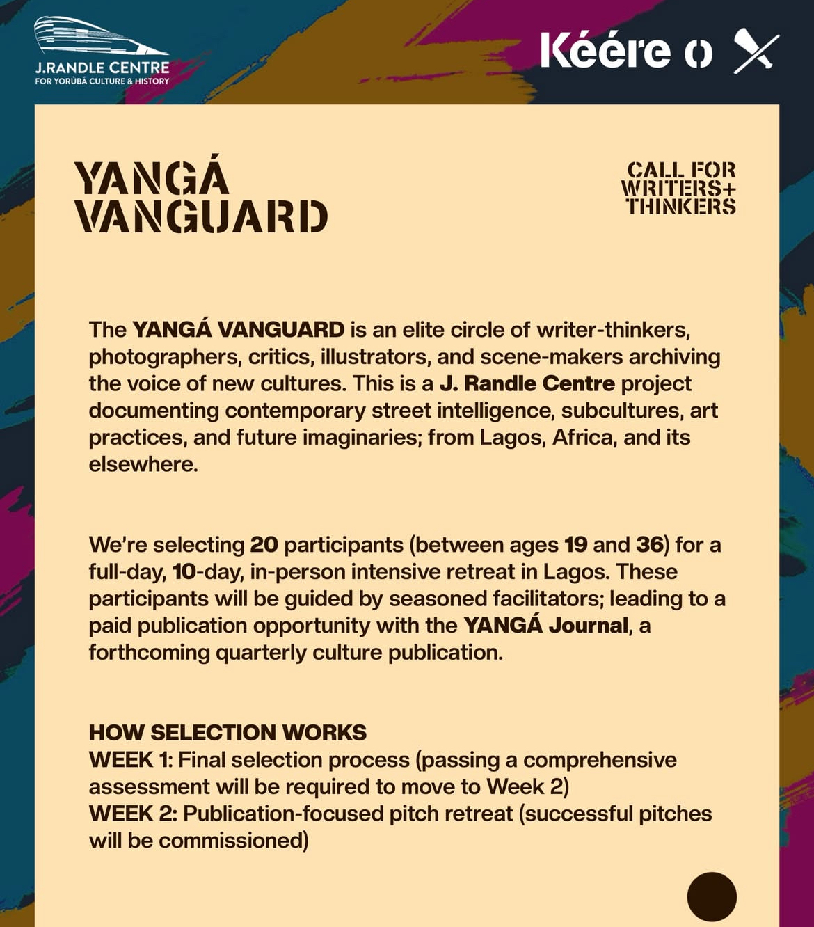 A project of the J. Randle Centre for Yorùbá Culture & History, YANGÁ Vanguard archives contemporary street intelligence, subcultures, artistic practices, and future imaginaries—from Lagos, across Africa, and into its diasporas.