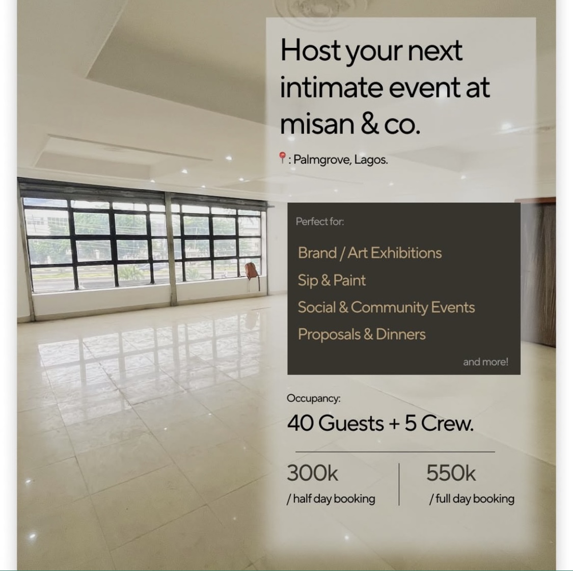 Host your next intimate event at misan & co.