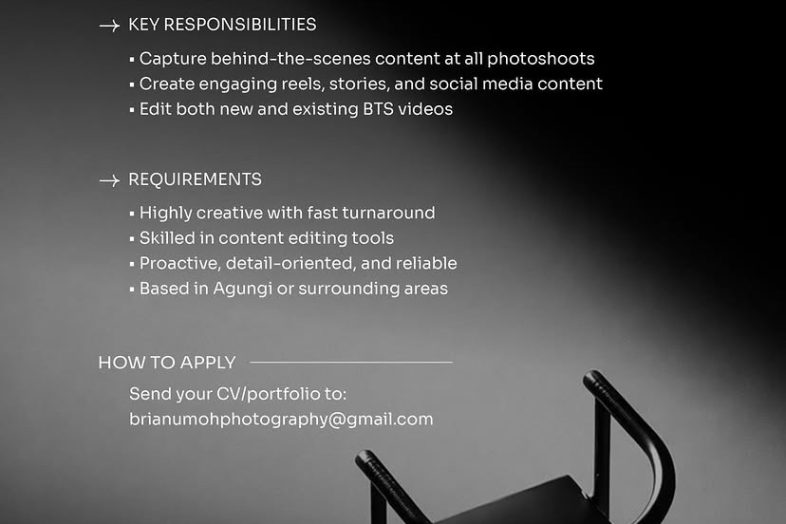 Send your CV and portfolio to: brianumohphotography@gmail.com