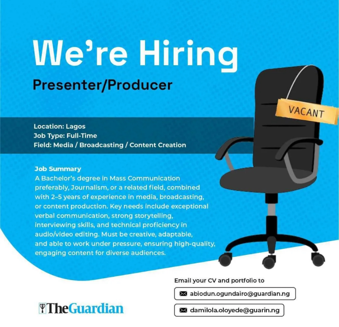 • Availability: Must be available for a one-month production schedule across both Port Harcourt and Lagos.
