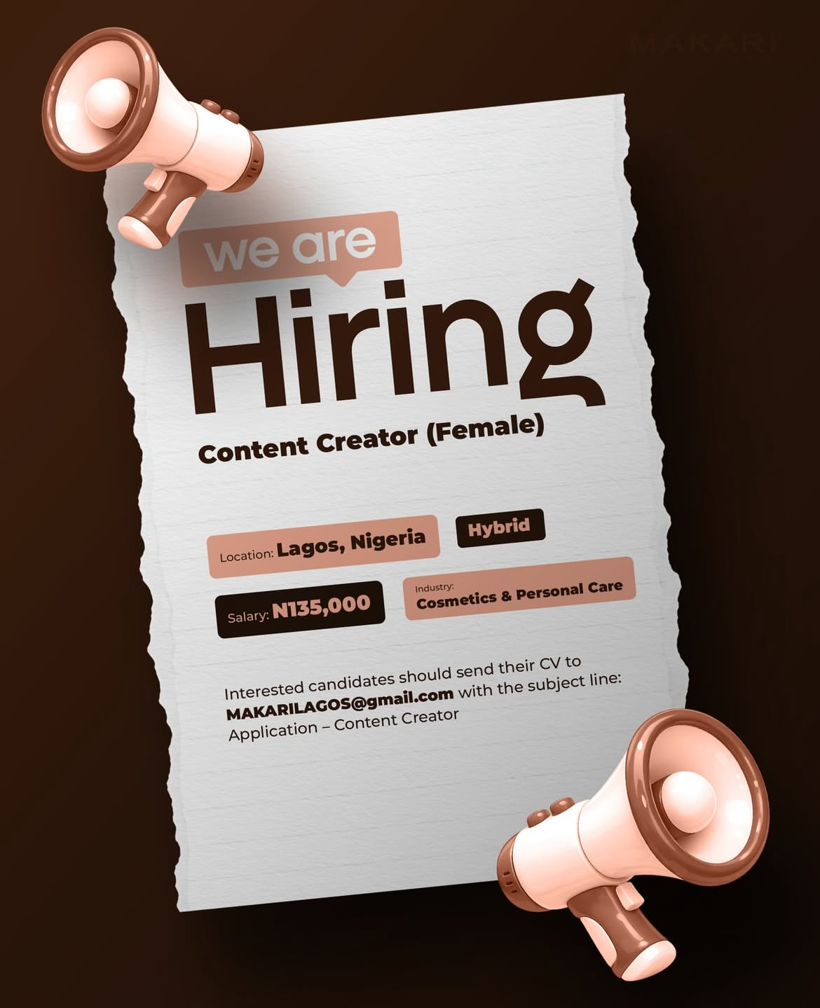 Makari Nigeria is seeking a passionate and creative Social Media Manager to join our growing team. We are looking for driven individuals ready to make an impact and grow alongside the brand.