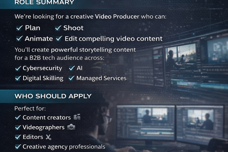 We’re seeking a hands-on Video Producer who can plan, shoot, animate, and edit compelling video content for a B2B technology audience. This role sits at the heart of our storytelling—bringing to life our people, expertise, events, and solutions across cybersecurity, digital skilling, and managed services. This role is ideal for someone currently in an advertising or creative agency who wants to move client-side and own end-to-end video production for a fast-growing tech brand.