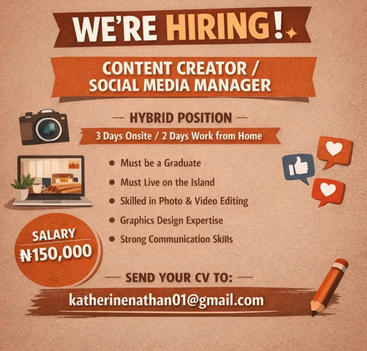 Send your application and portfolio (if available) to thecreateorafrica@gmail.com