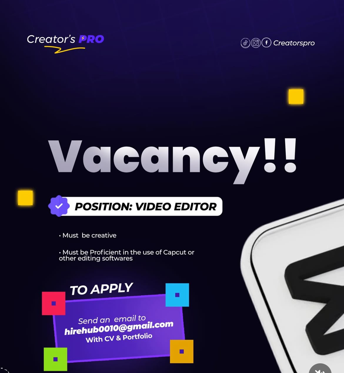 Send your CV and portfolio of past work to:
