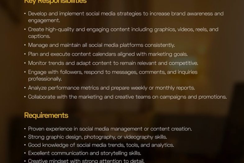 • Create high-quality and engaging content including graphics, videos, reels, and captions.