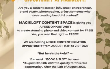 FREE CONTENT CREATION OPPORTUNITY AT MAGIKLOFT! Are you a content creator, influencer, entrepreneur, brand owner, photographer, or just someone who loves creating beautiful content? MAGIKLOFT CONTENT SPACE is giving you A FREE OPPORTUNITY to ...