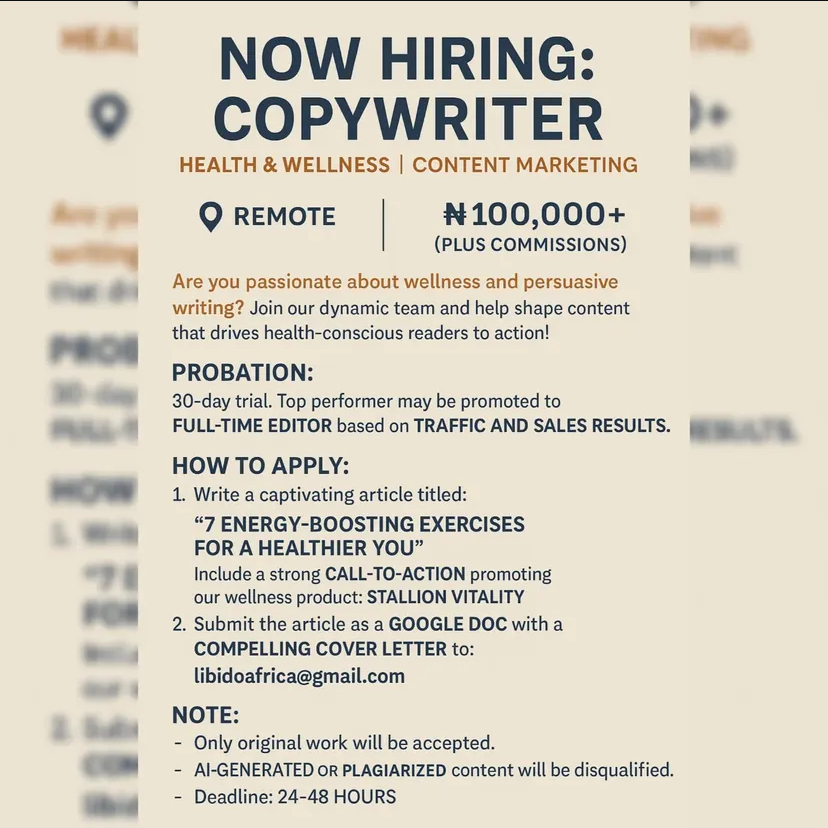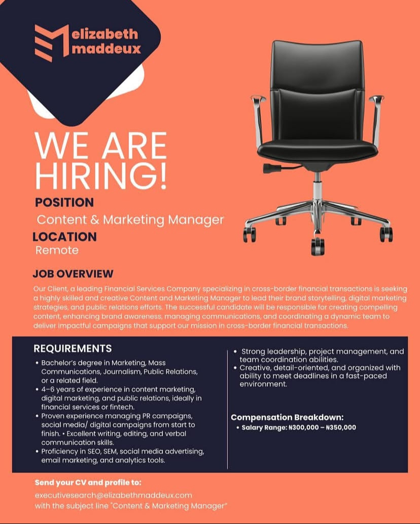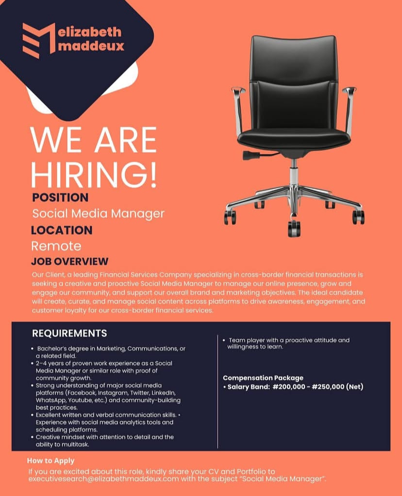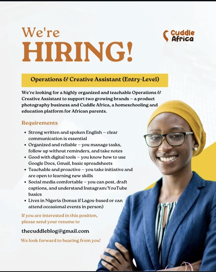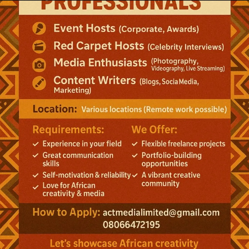 Experience in your field Great communication skills self motivation and reliability love for African creativity& media